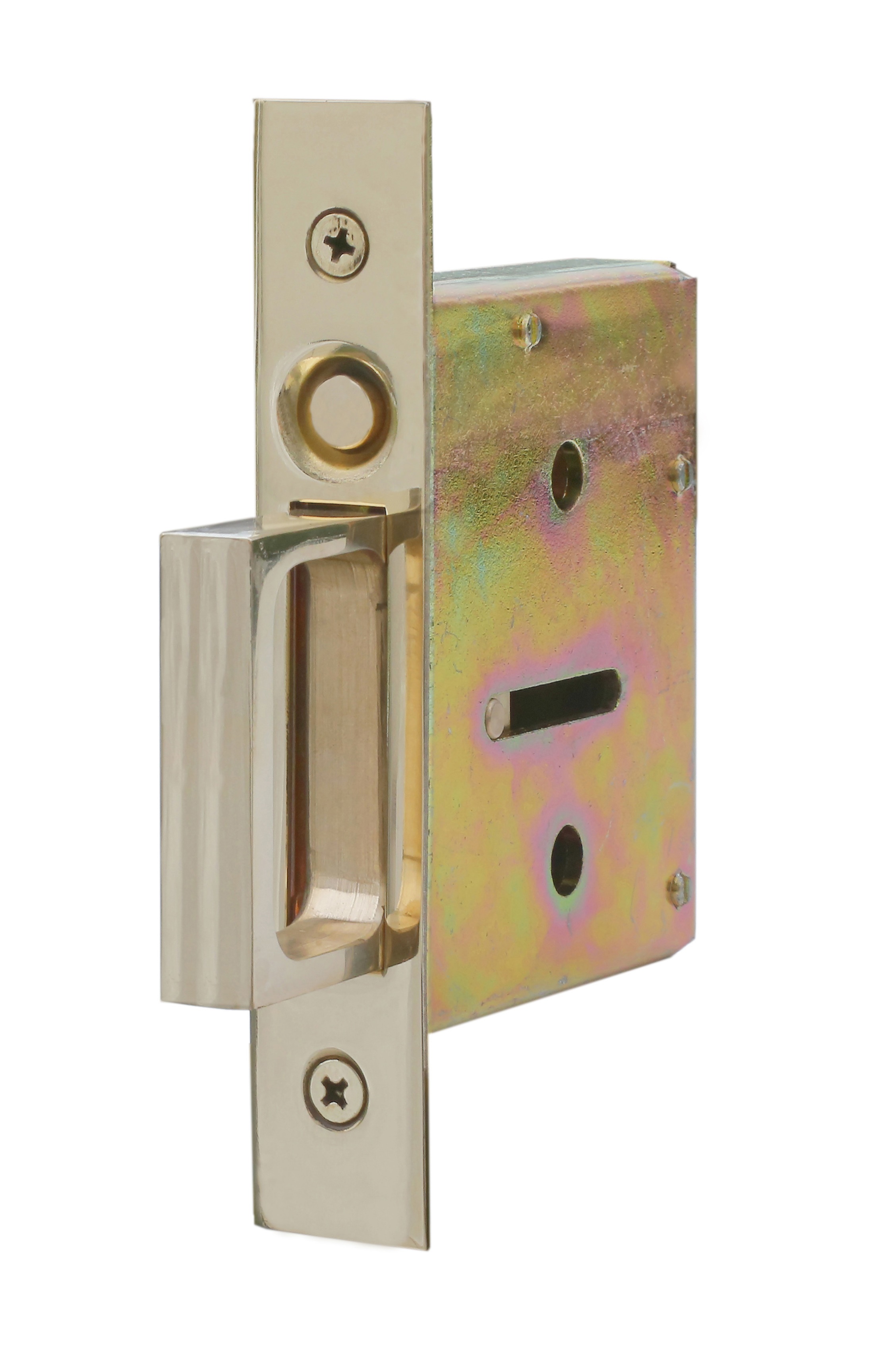 Produkte > Türschlösser & Zubehör Messing > Schiebetürhakenschloss mit Druckknopf > Schiebetürhakenschloss - Serie 1045