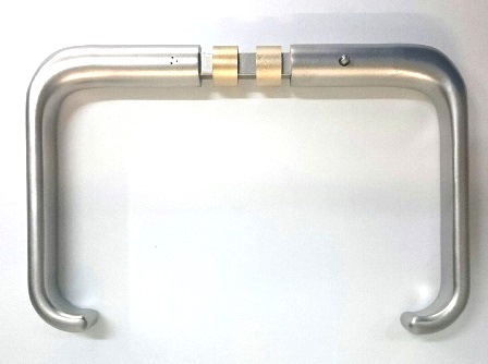 N-171099.0 Niro geb Griffdrückerpaar 115 mm, Vkt. 9 mm, TS 28-50 mm 0,46 Satz