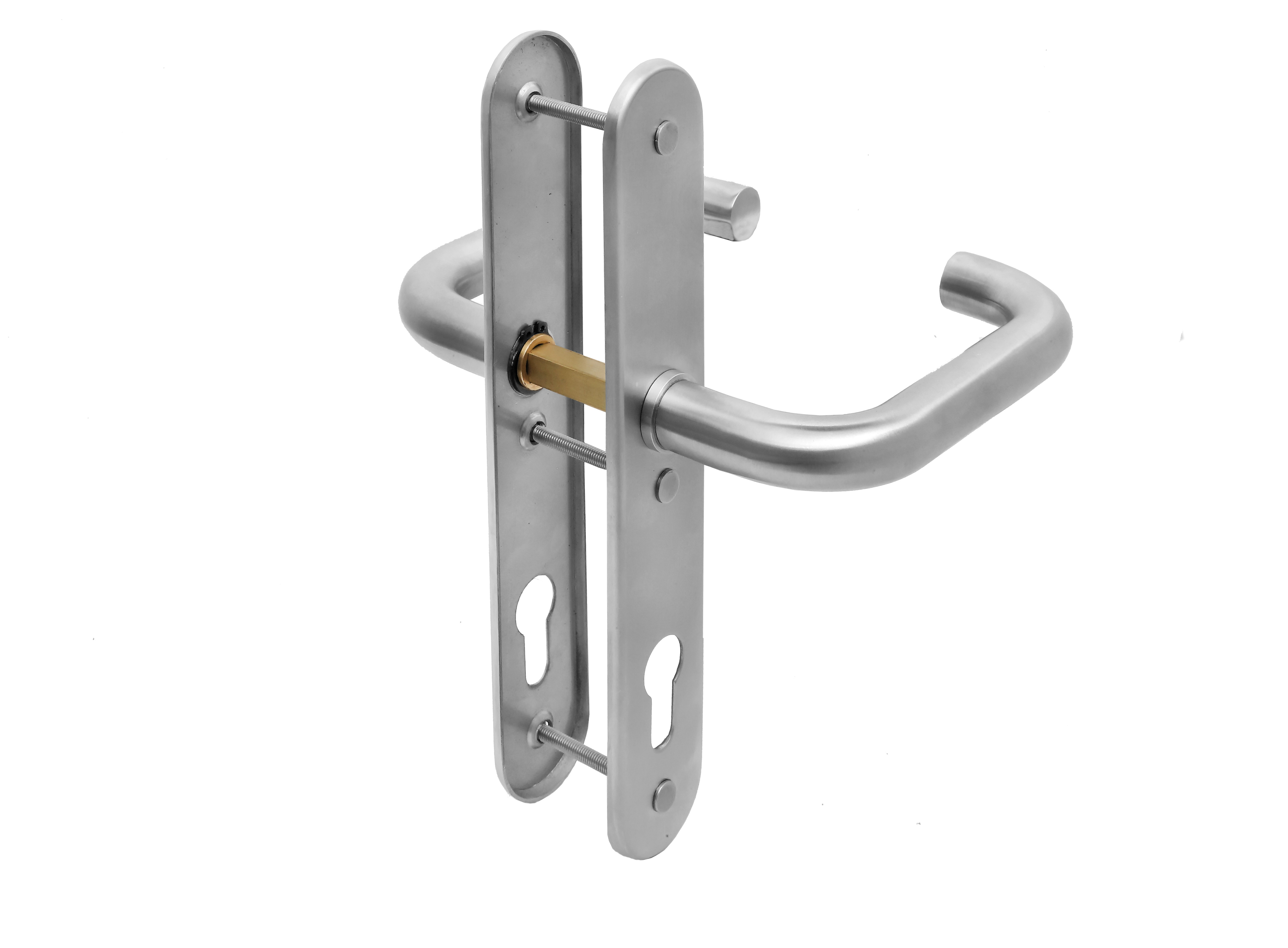Produkte > Türschlösser & Zubehör Edelstahl > Griffdrücker Edelstahl für Einsteckschlösser > Griffdrückerset mit Langschild - Serie N-2000-2003